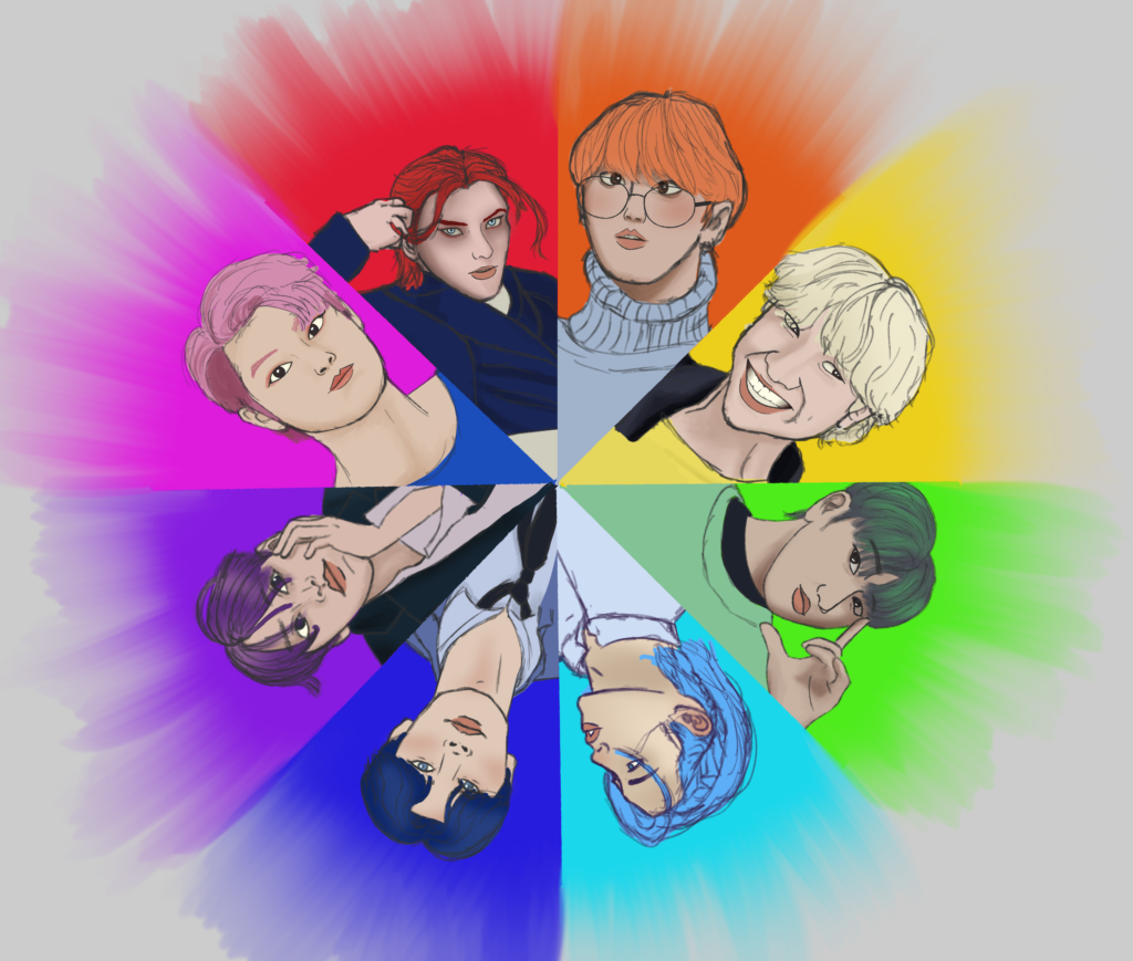 Este challenge de redes sociales era dibujar una persona por color y que mejor que Stray Kids con diferentes colores de pelo para hacerlo.